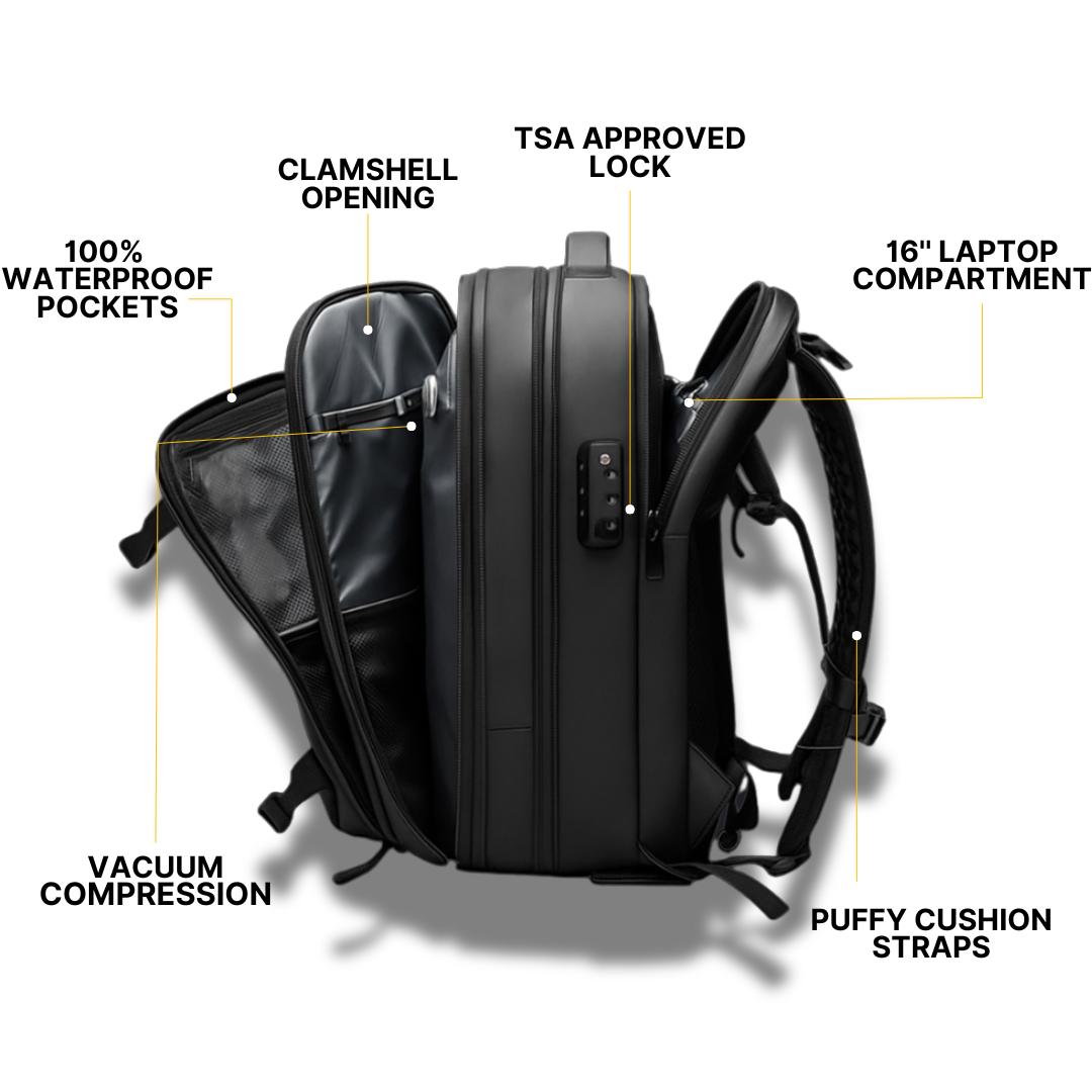 What began as an idea became a mission to reinvent the way people pack. The result is a smarter travel backpack with built-in vacuum compression, designed to maximize space and simplify every trip.