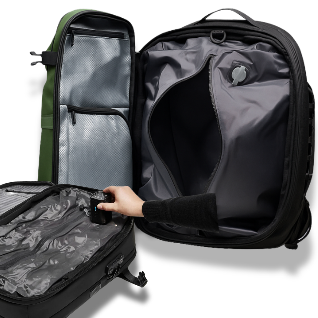 Our backpack is TSA-compliant and airline-friendly. The vacuum system has no batteries or electronics, so it's safe for air travel and fits easily in overhead bins or under the seat. Always check with your airline to be sure.