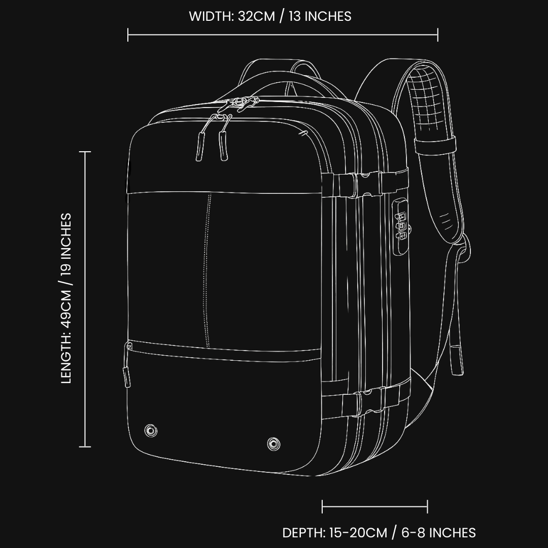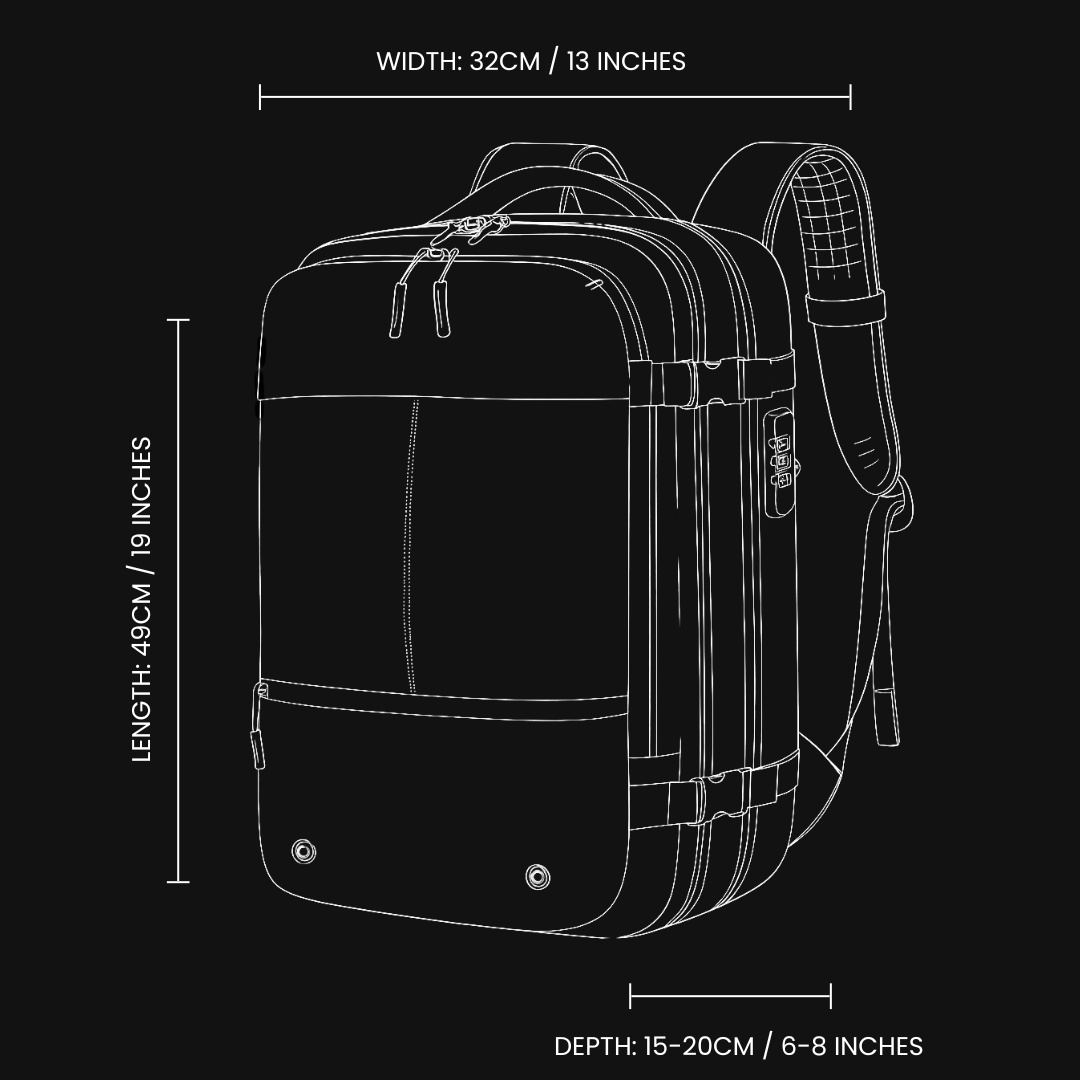 Yes, the backpack is designed to meet major airlines’ carry-on size limits. Its dimensions are 19" × 13" × 6–8" (49 × 32 × 15–20 cm), well within standard carry-on limits: 22 × 14 × 9 inches or 56 × 45 × 25 cm ✅. We still recommend checking with your airline, as policies can vary.